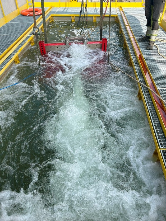 This setup allowed us to carry out repeatable tests inside our large test tank.